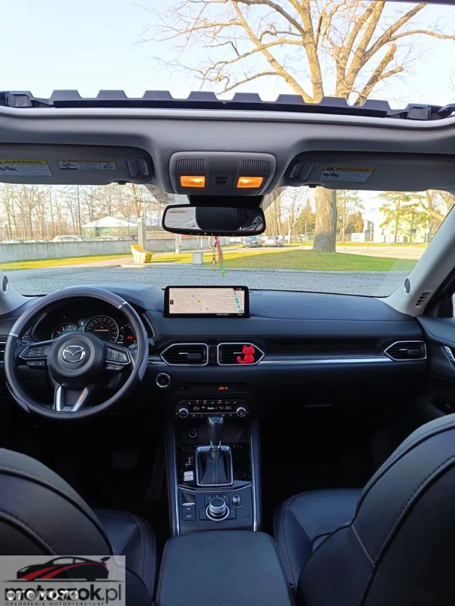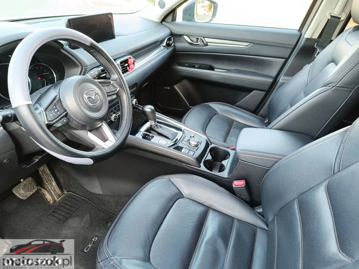Witam. Sprzedam Mazde CX-5 Grand Touring biała perła 4x4 2021r. z przebiegiem 69000 w pięknym stanie w najbogatszej wersji wyposażenia. Wyposażony w silnik benzynowy 2,5 o mocy 194km sport oraz automatyczną skrzynię biegów. Ważny przegląd do 29.12.2026 i OC do 23.05.2026. Auto sprowadzone z Kanady 1,5 roku temu. Cena 115300. W razie pytań proszę o kontakt . Wyposażenie: system start stop, wyświetlacz typy Head-Up, wentylowane przednie fotele, podgrzewane fotele przednie i tylne, czujnik zmierzchu i deszczu, automatyczna kontrola ogrzewania, światła do jazdy dziennej diodowe LED, wspomaganie ruszania pod górę Hill-Holder, asystent hamowania, ogranicznik prędkości, system rozpoznawania znaków drogowych, aktywne rozpoznawanie znaków ograniczenia prędkości, cyfrowy kluczyk, keyless entry i go, opony wielosezonowe 19, uruchamiane silnika bez użycia kluczyków, tapicerka skórzana, szyberdach szklany przesuwany i uchylany elektrycznie, kamera parkowa tył, tempomat, lusterka boczne składane elektrycznie, zmiana biegów w kierownicy, kierownica ze sterowaniem radia, elektryczny hamulec postojowy, felgi aluminiowe 19, kierownica ogrzewana, elektrycznie ustawiany fotel kierowcy i pasażera, siedzenie z pamięcią ustawienia, lampy przednie w technologi LED, asystent martwego pola, aktywny asystent zmiany pasa ruchu, kontrola zmiana pasa ruchu, kontrola odległości od poprzedzającego pojazdu i wiele innych.